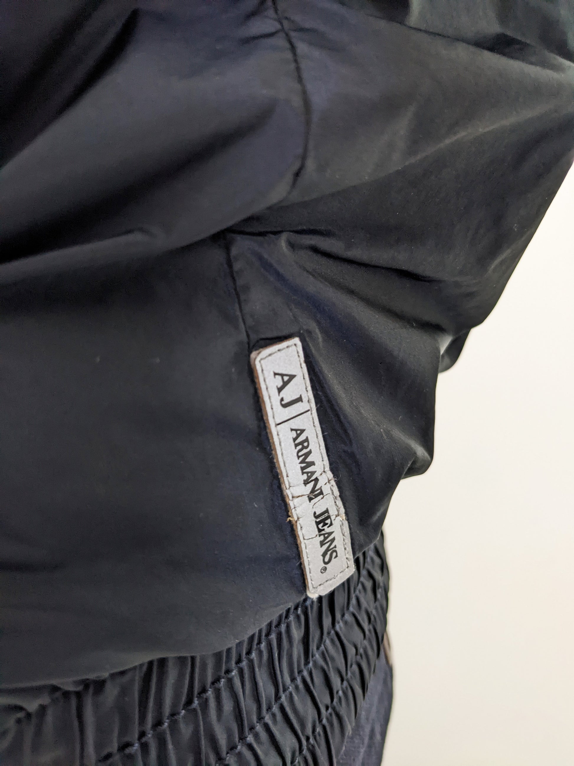 Armani Jeans Vintage Mens Iridescent Blue Bomber Jacket, 1990s