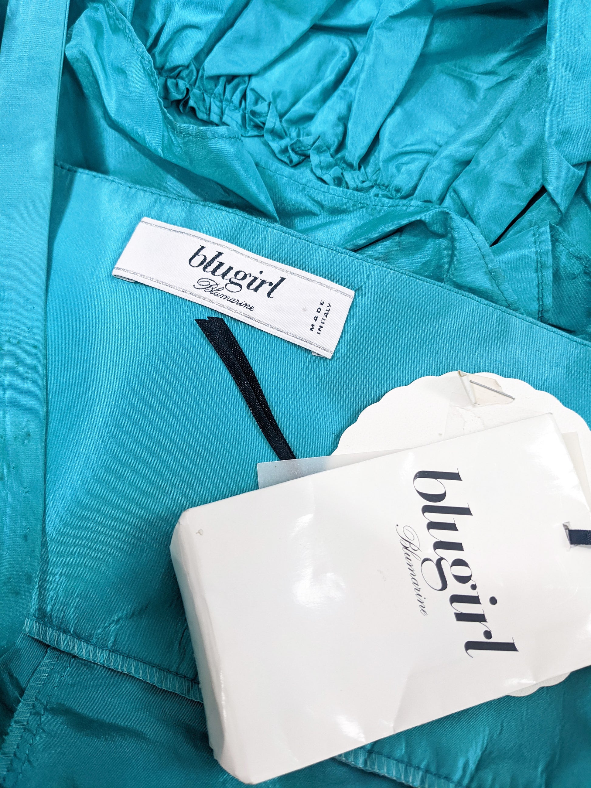 Blumarine Blugirl Vintage y2k Teal Silk Taffeta Ruffled Dress, 2000s