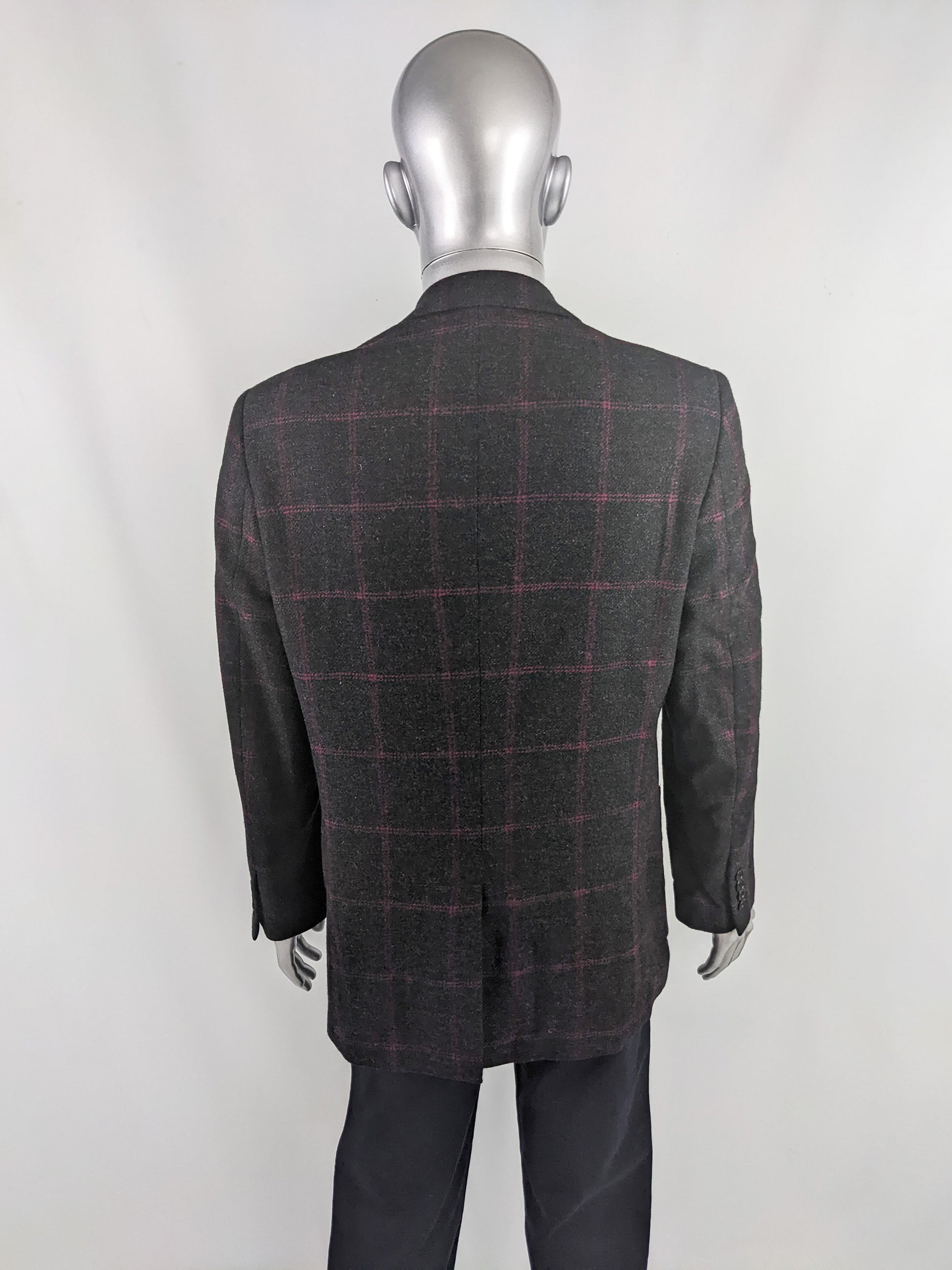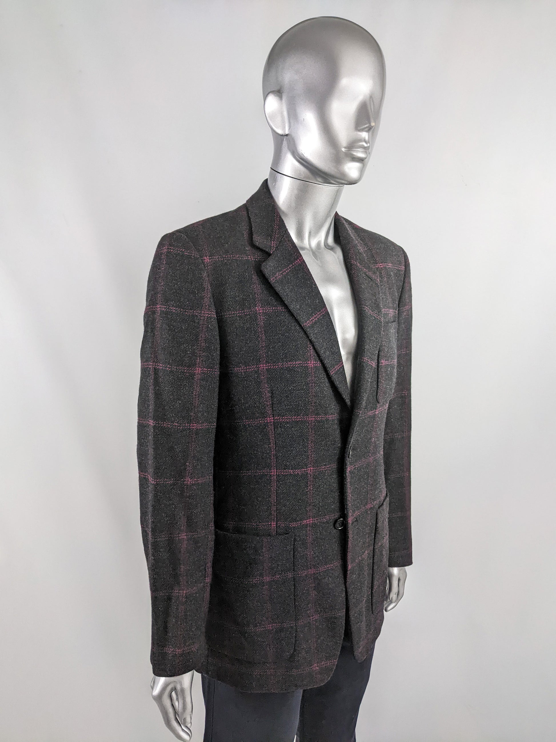 Byblos Vintage Mens Grey & Pink Windowpane Check Blazer, 1990s