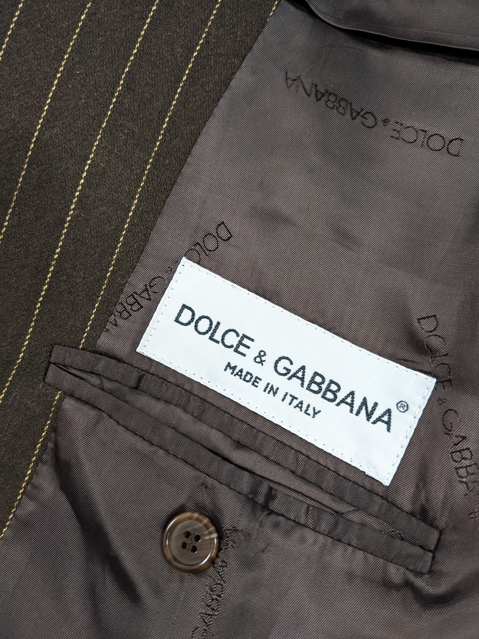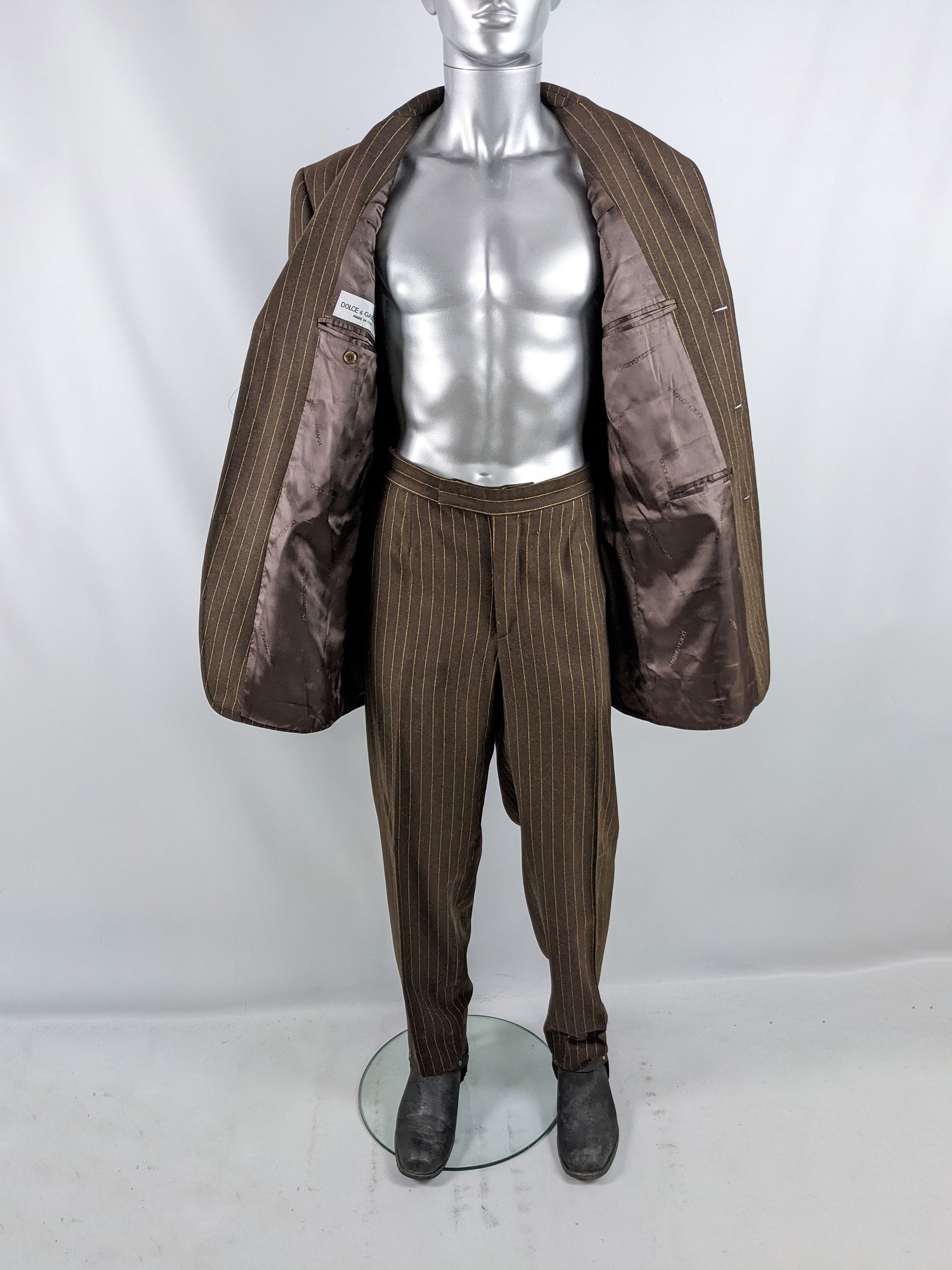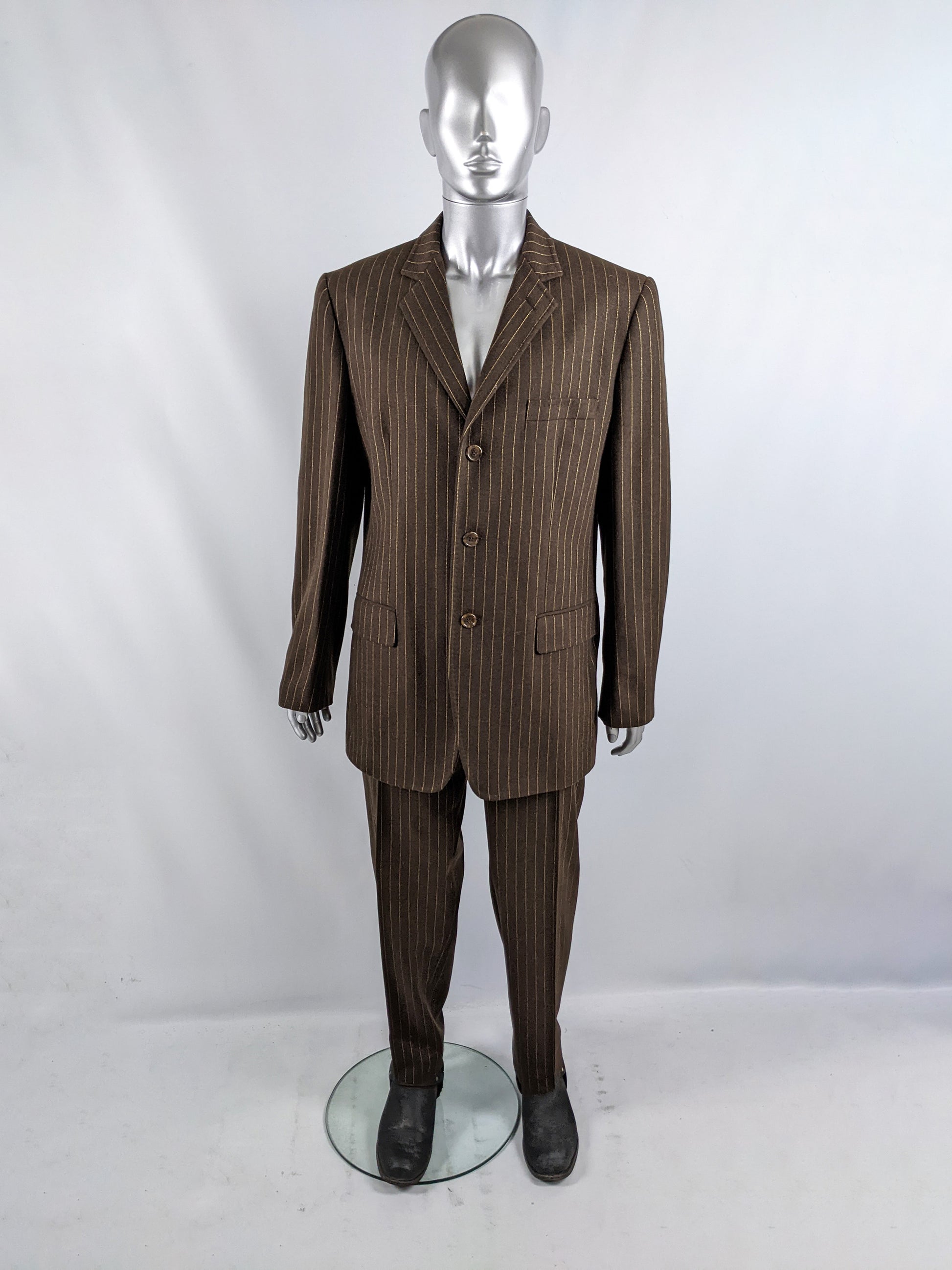 Mens Vintage Two Piece Brown Pinstripe Wool Suit, 1990s