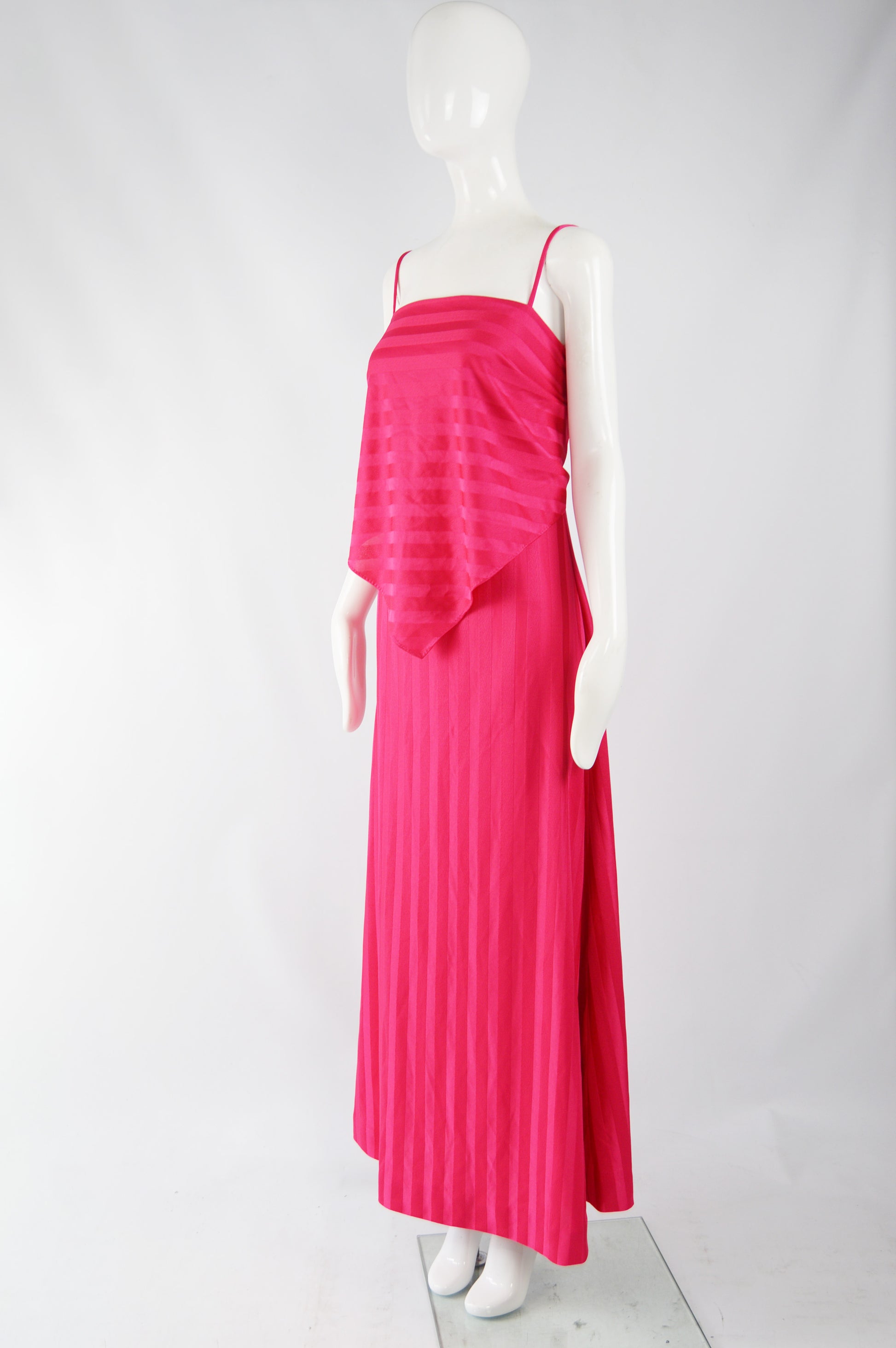 Womens Pink Vintage Tiered Evening Dress, 1970s