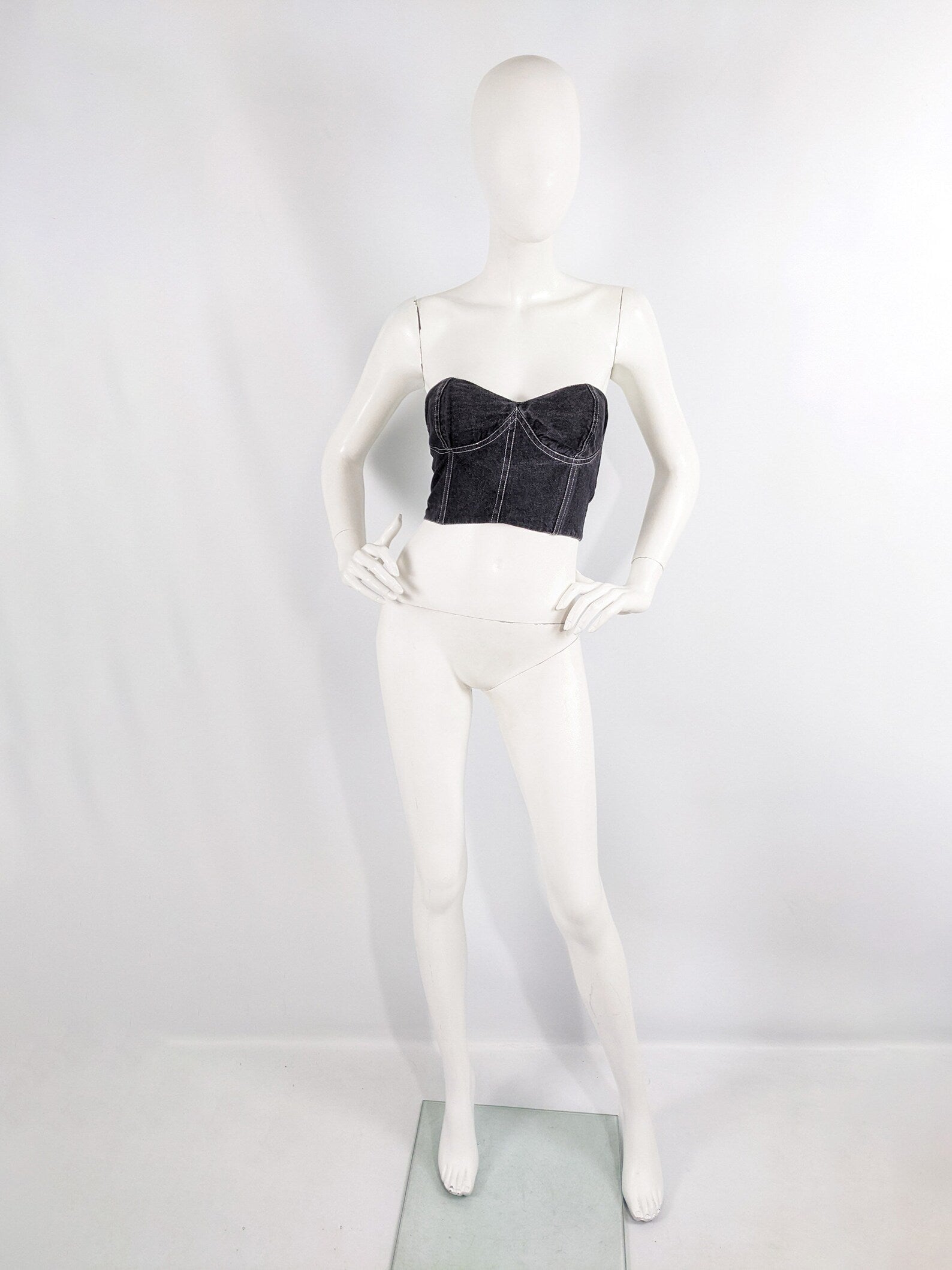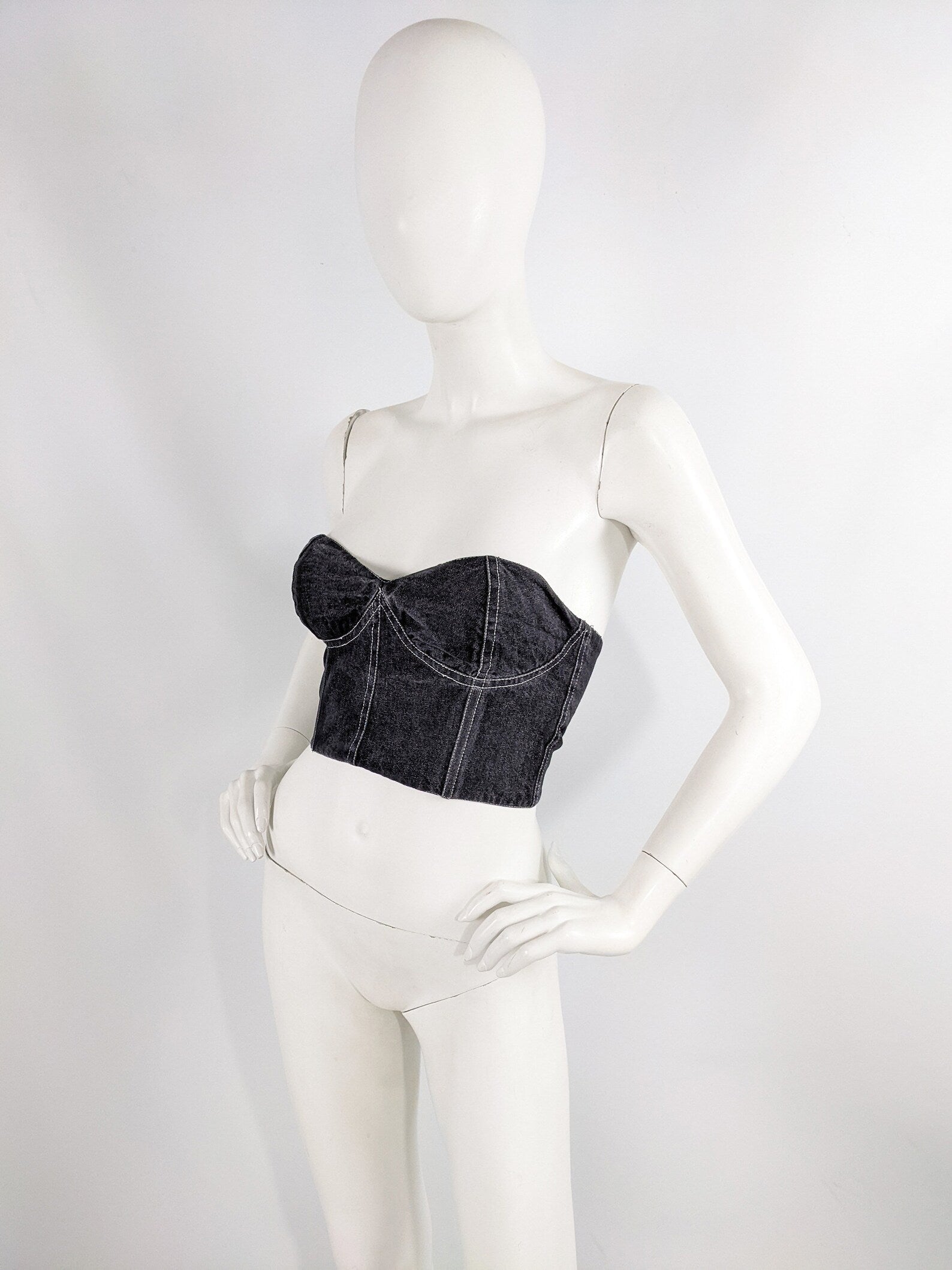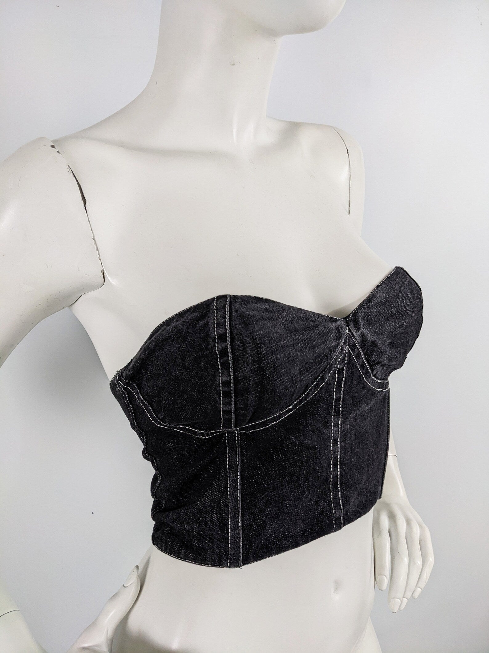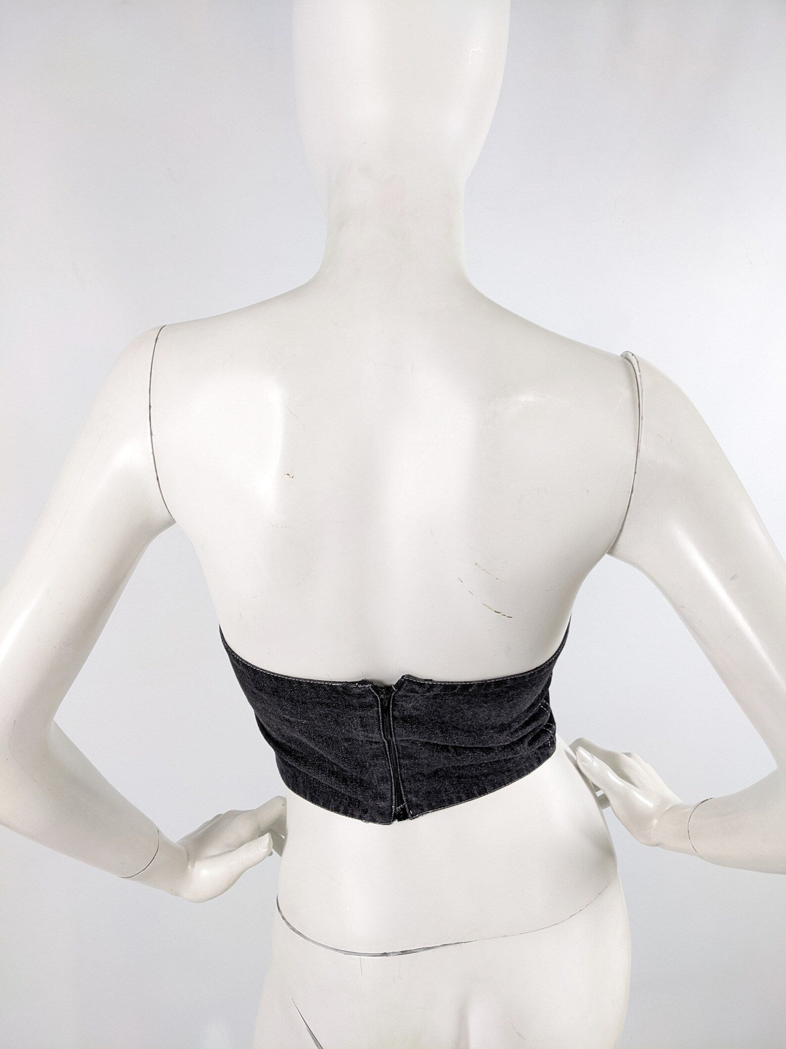 Genny Vintage Womens Black Denim Bustier Top, 1980s