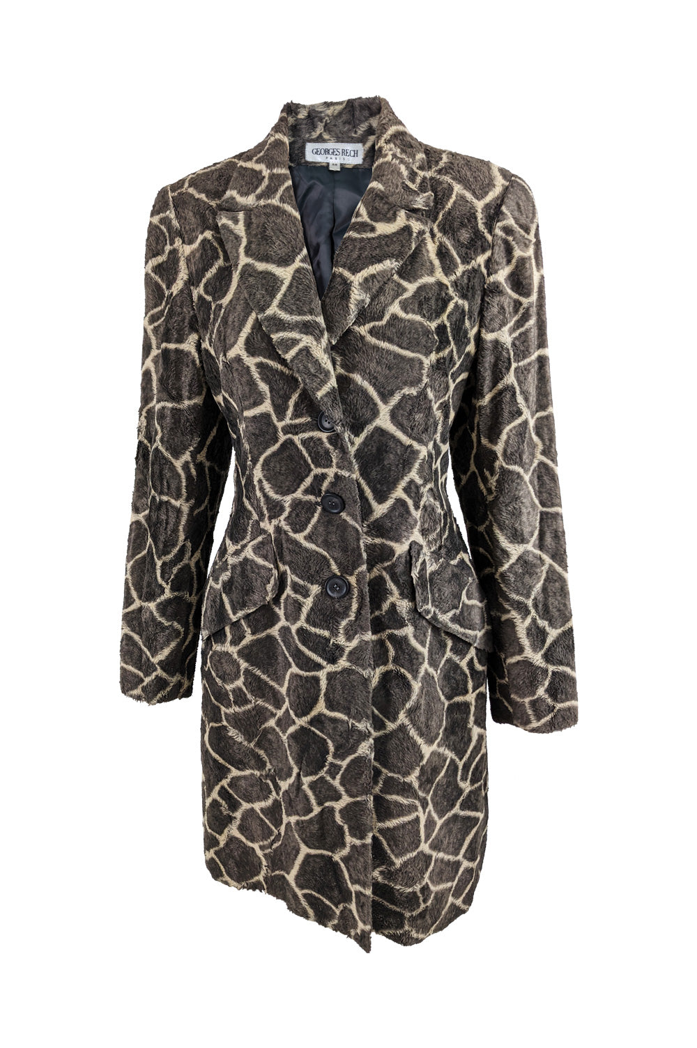 Georges Rech Vintage Womens Giraffe Print Faux Fur Jacket,1990s