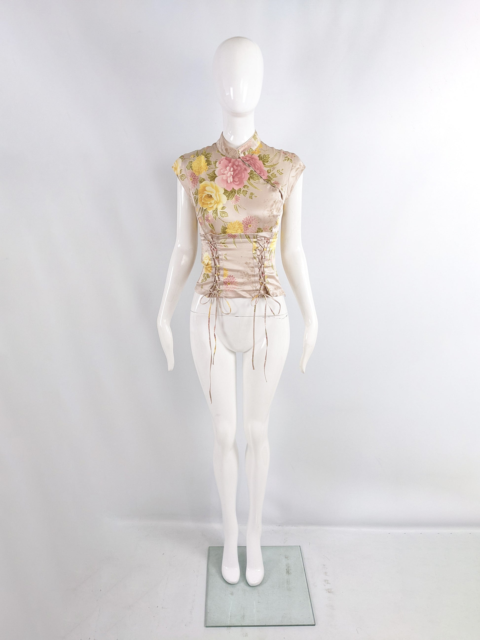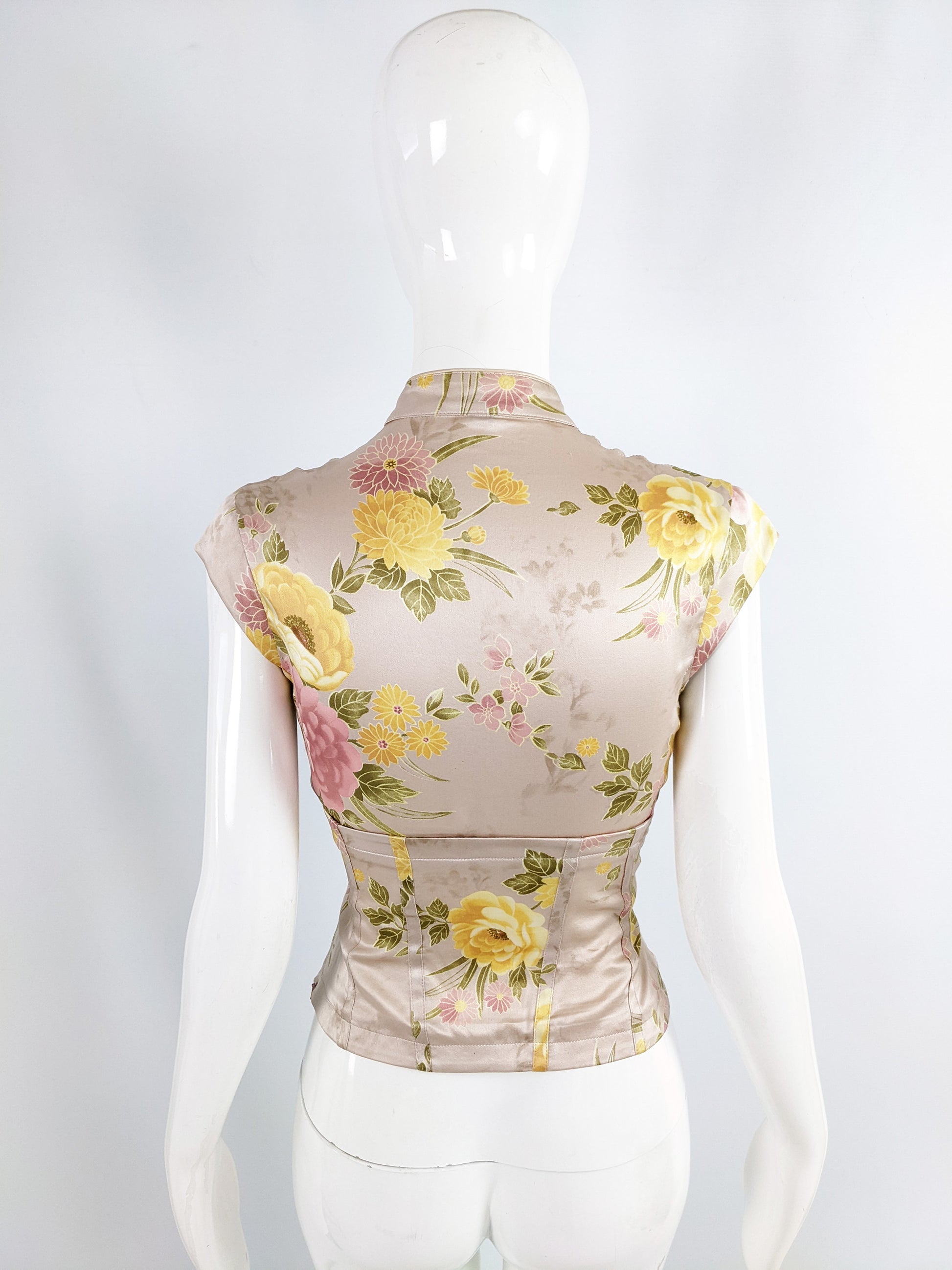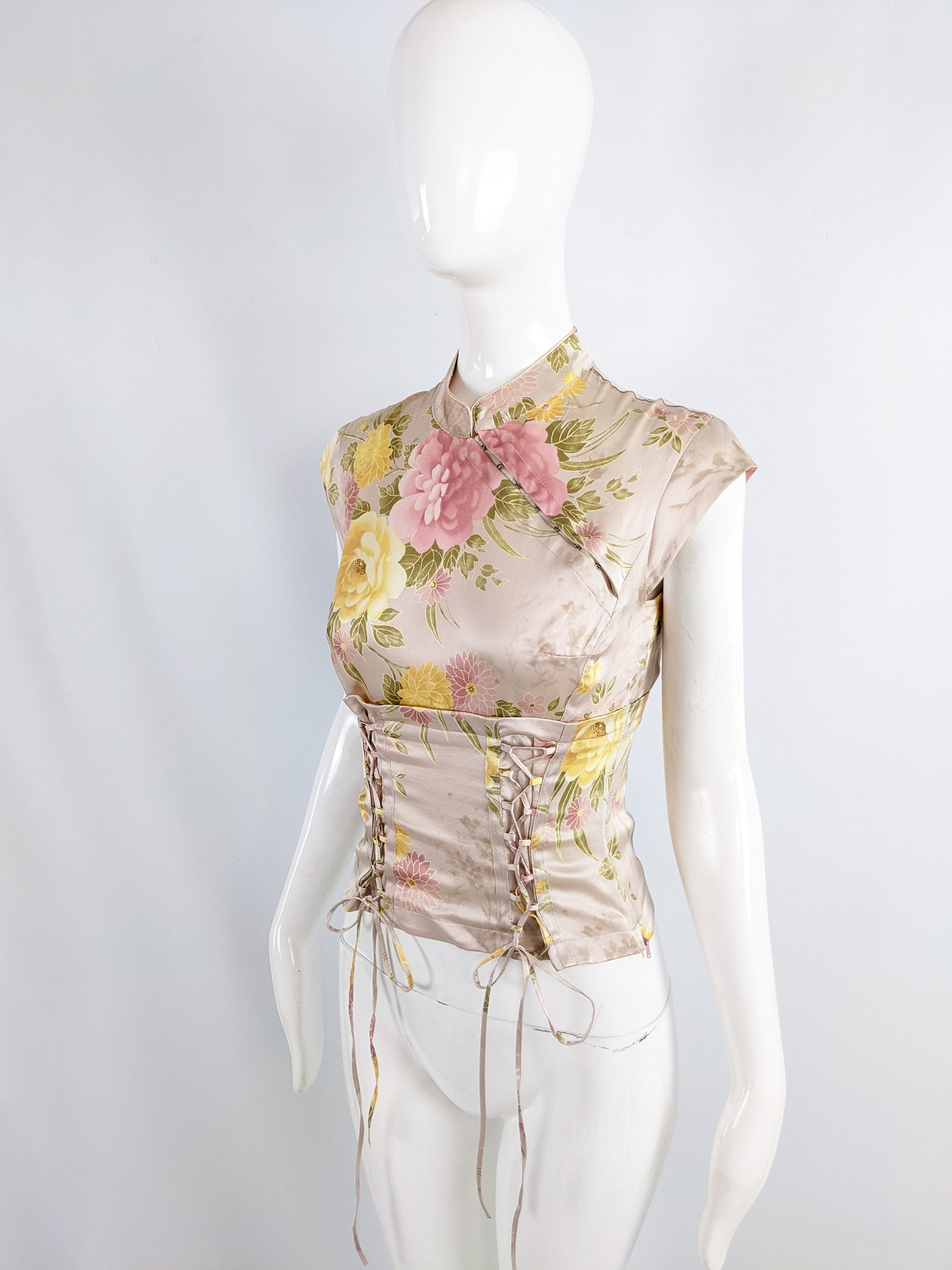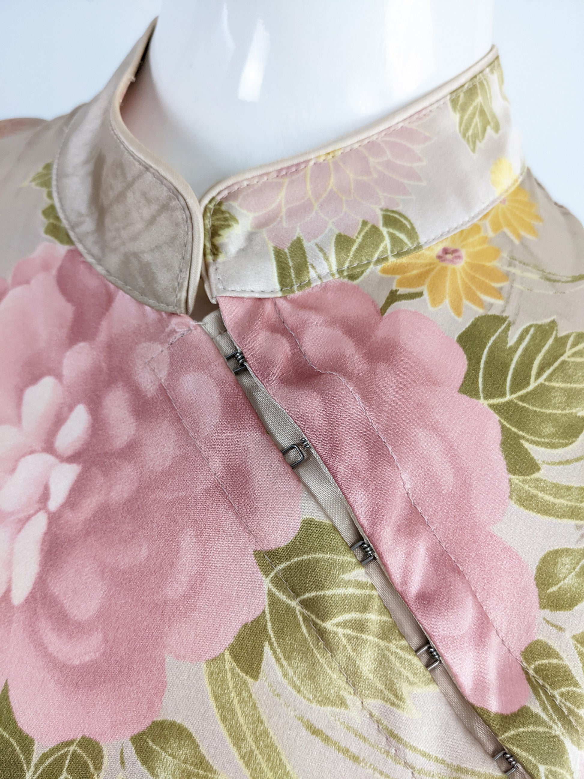 Karen Millen Vintage Y2K Pastel Pink Asian Style Silk Blouse, 2000s
