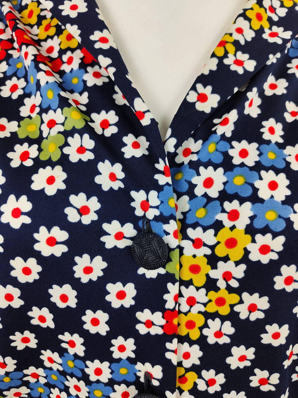 Condition: Very Good Vintage Condition - Some very faint, small brown dots to front, lost well in bold pattern. No holes or tears.