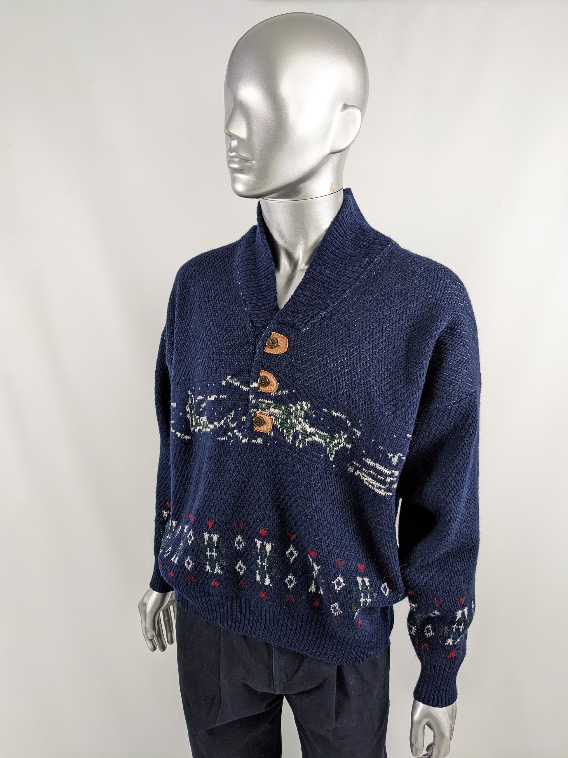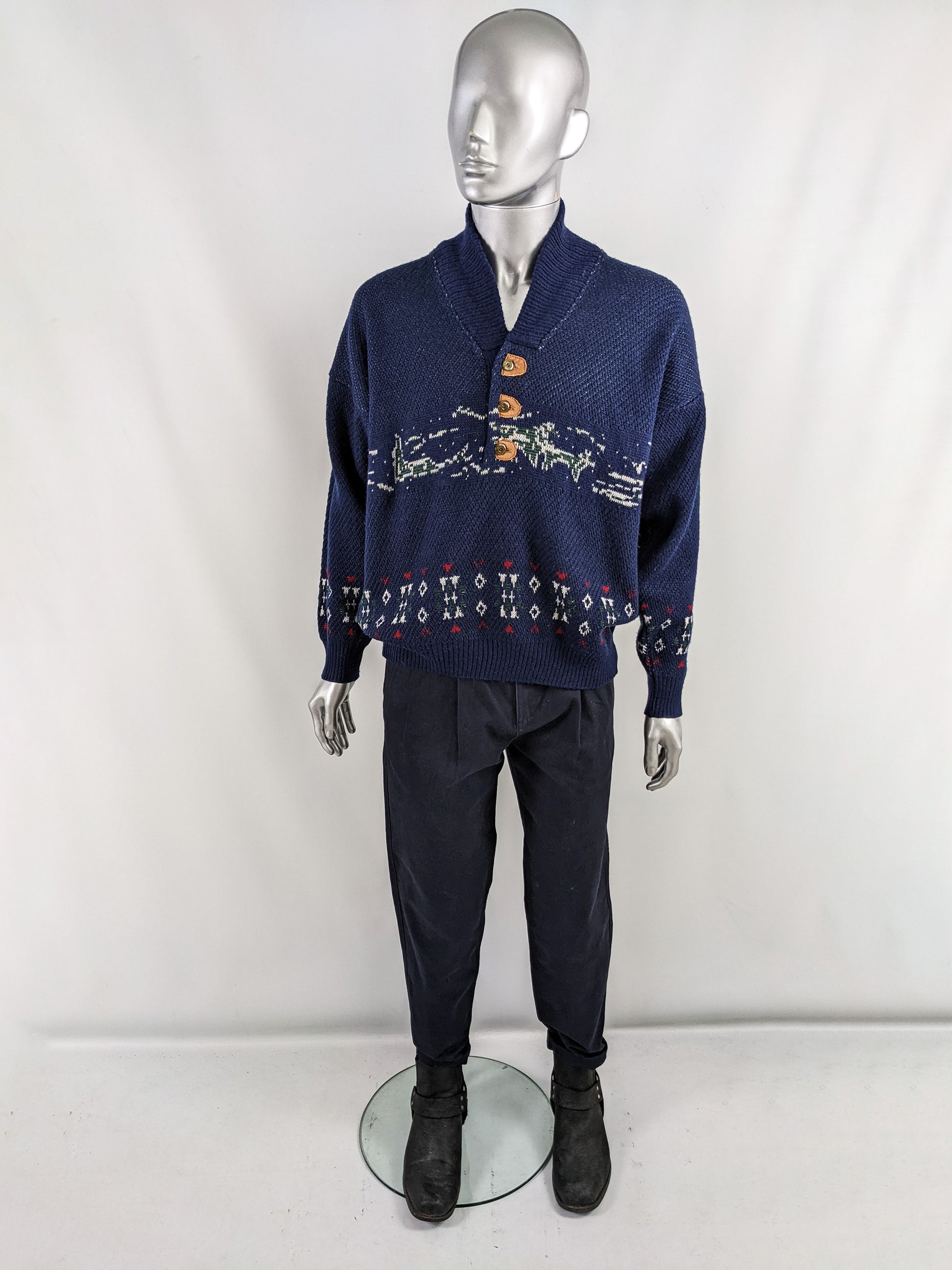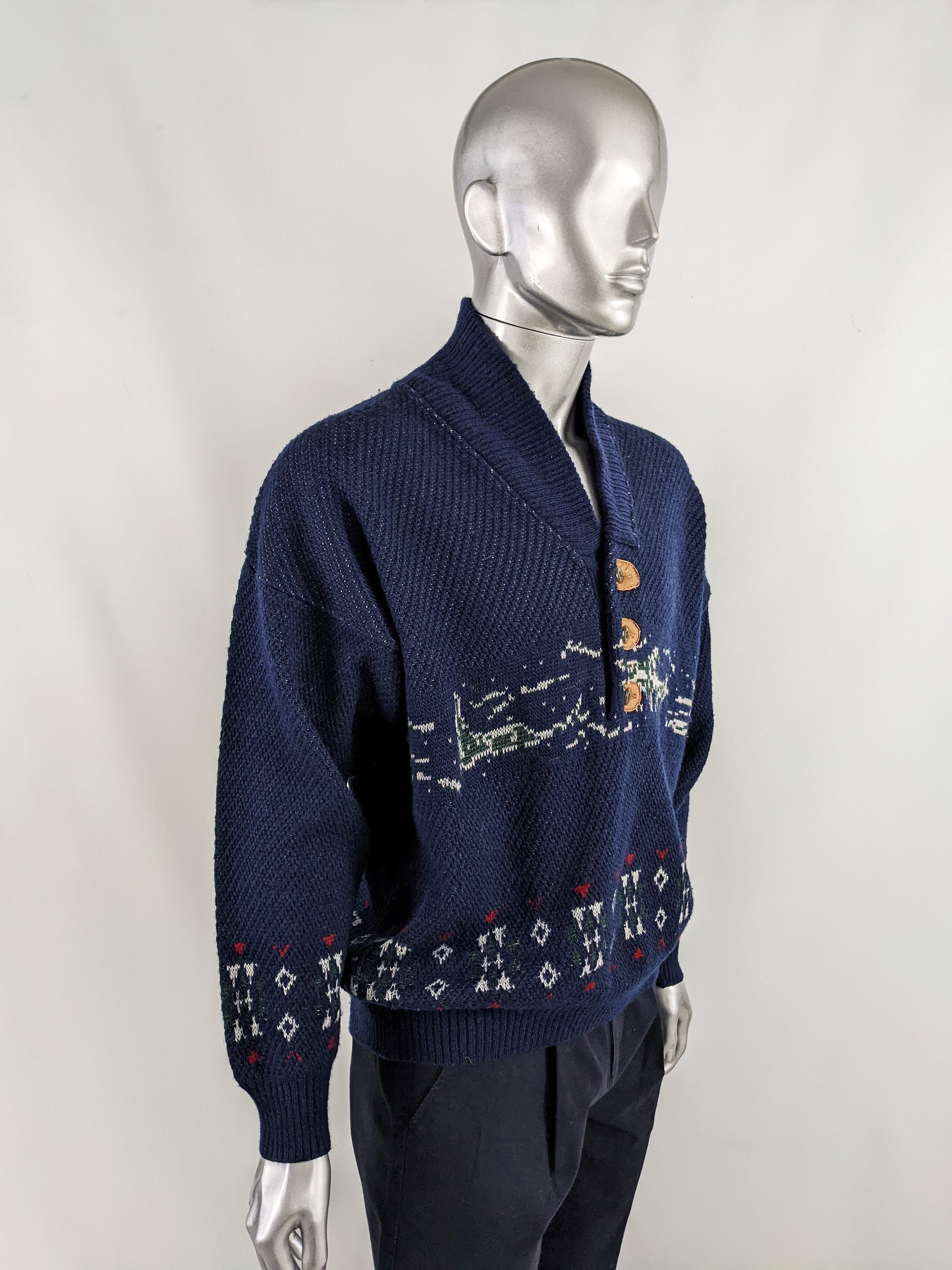 Luciano Chiari Vintage Mens Shawl Collar Jumper, 1980s