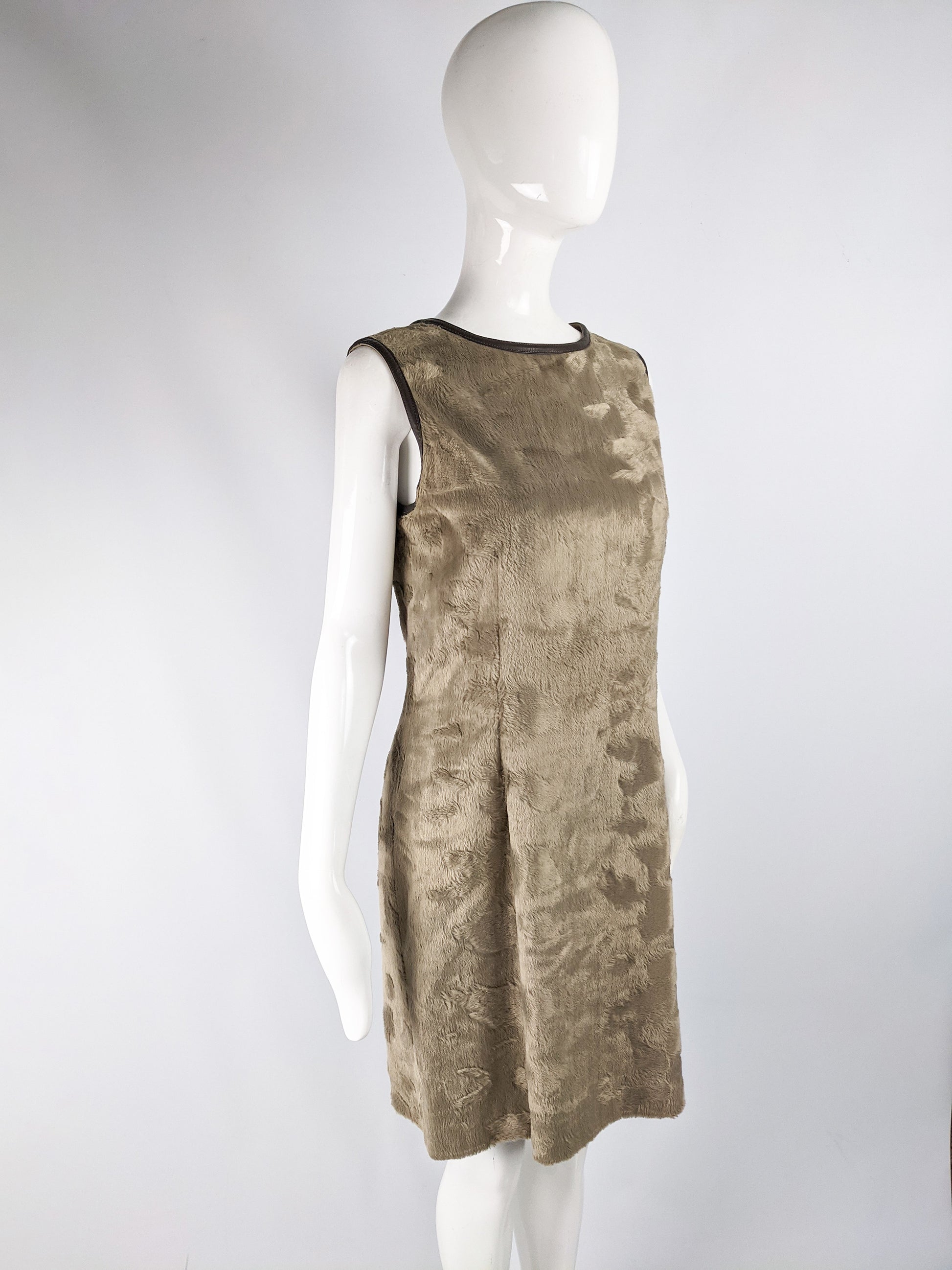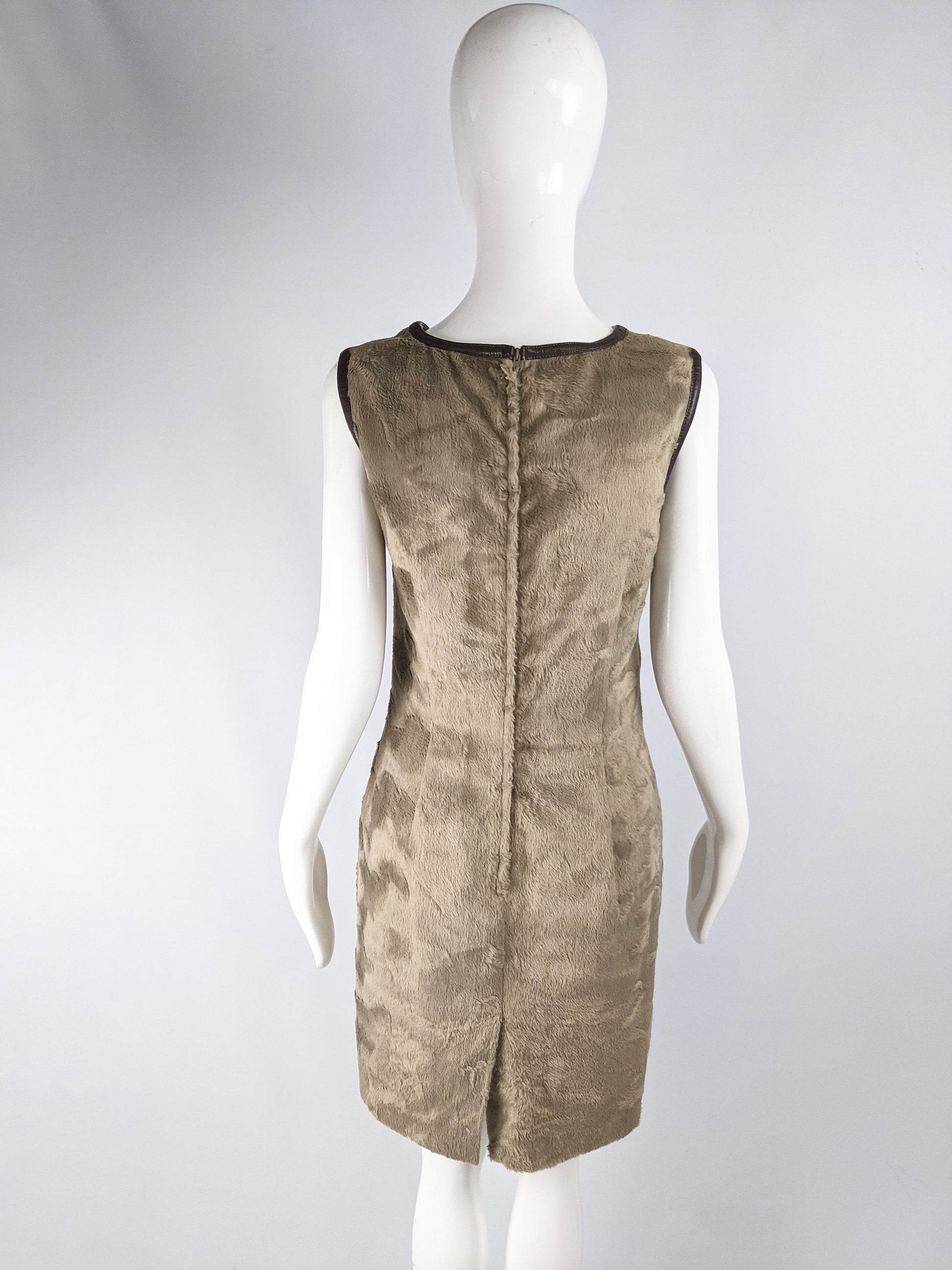 Womens Faux Fur Vintage Shift Dress, 1990s