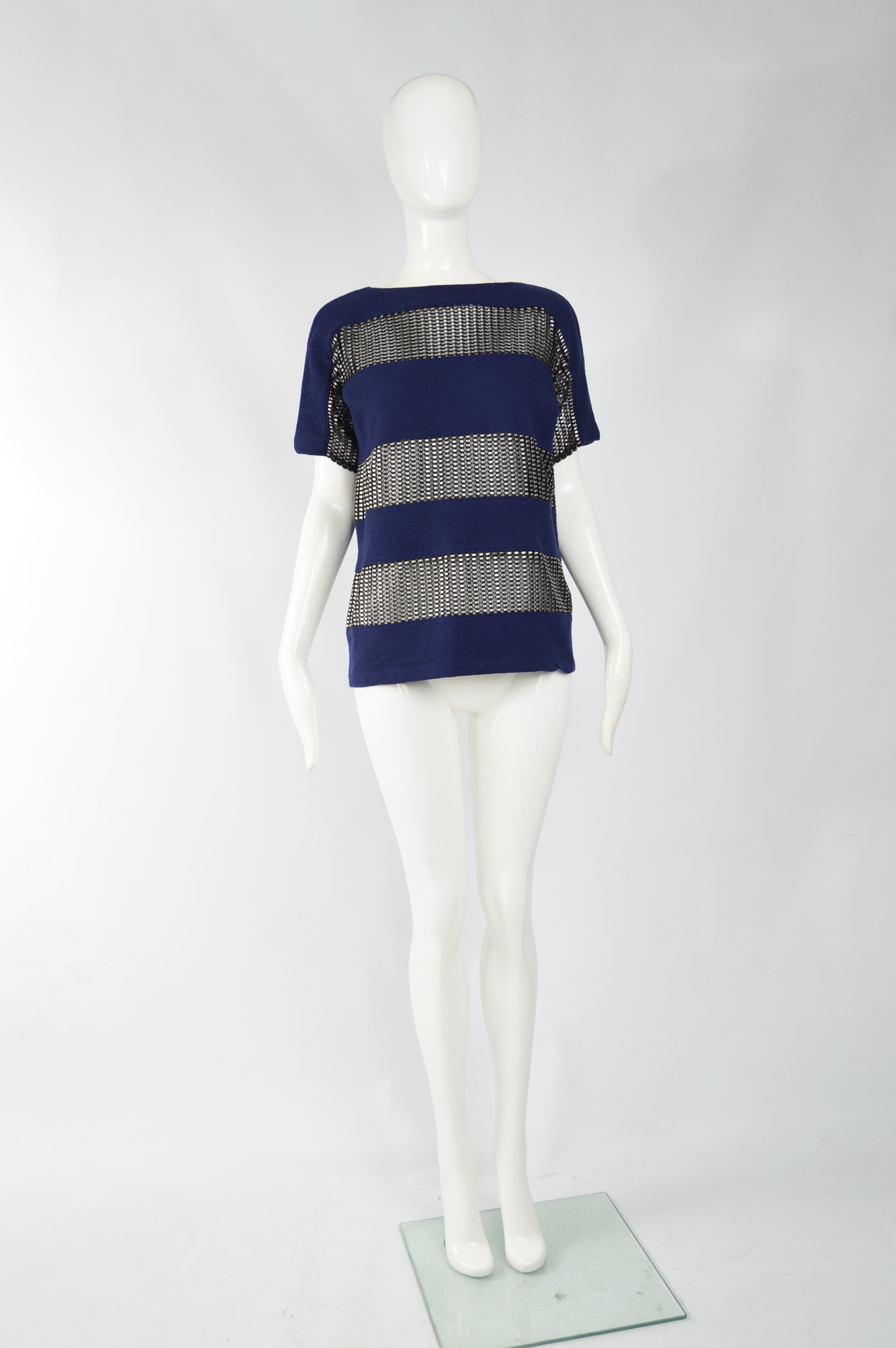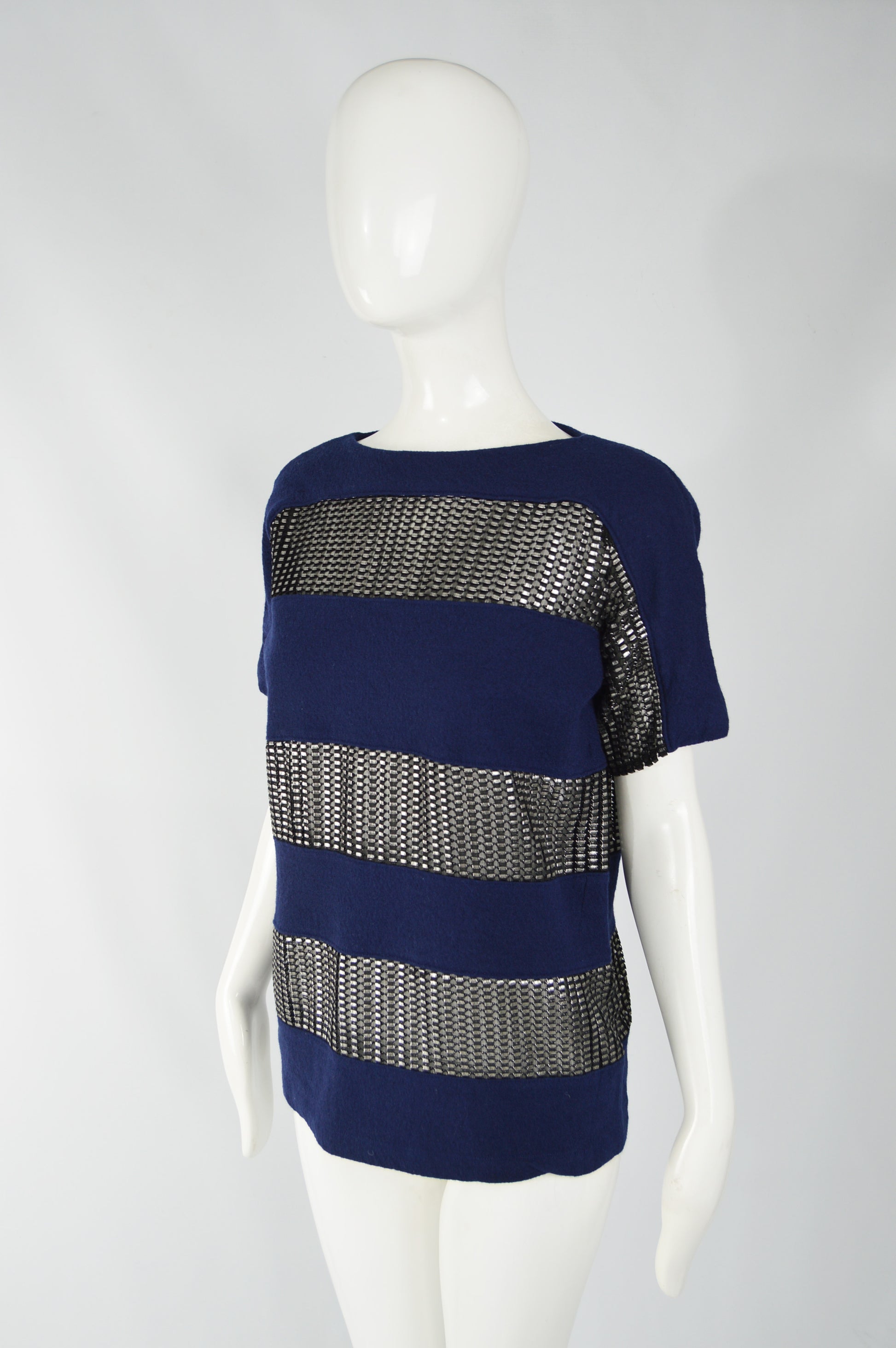 Womens Blue Wool & Silver Mesh Shirt, 2000s