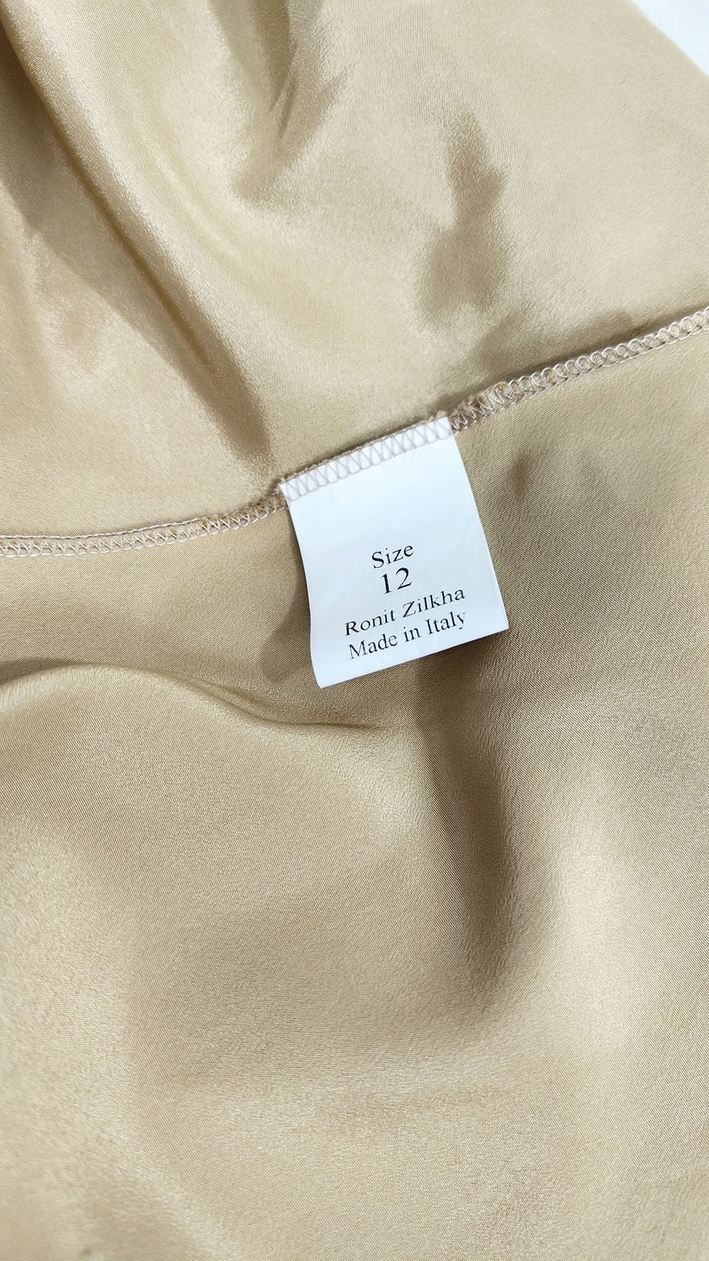 Condition: Very Good Condition - Two tiny dots of colour run to front as pictured and the faintest mark of colour run to sleeve, only seen upon close inspection. Main label is missing, but Ronit Zilkha care label still remains. No holes or tears.