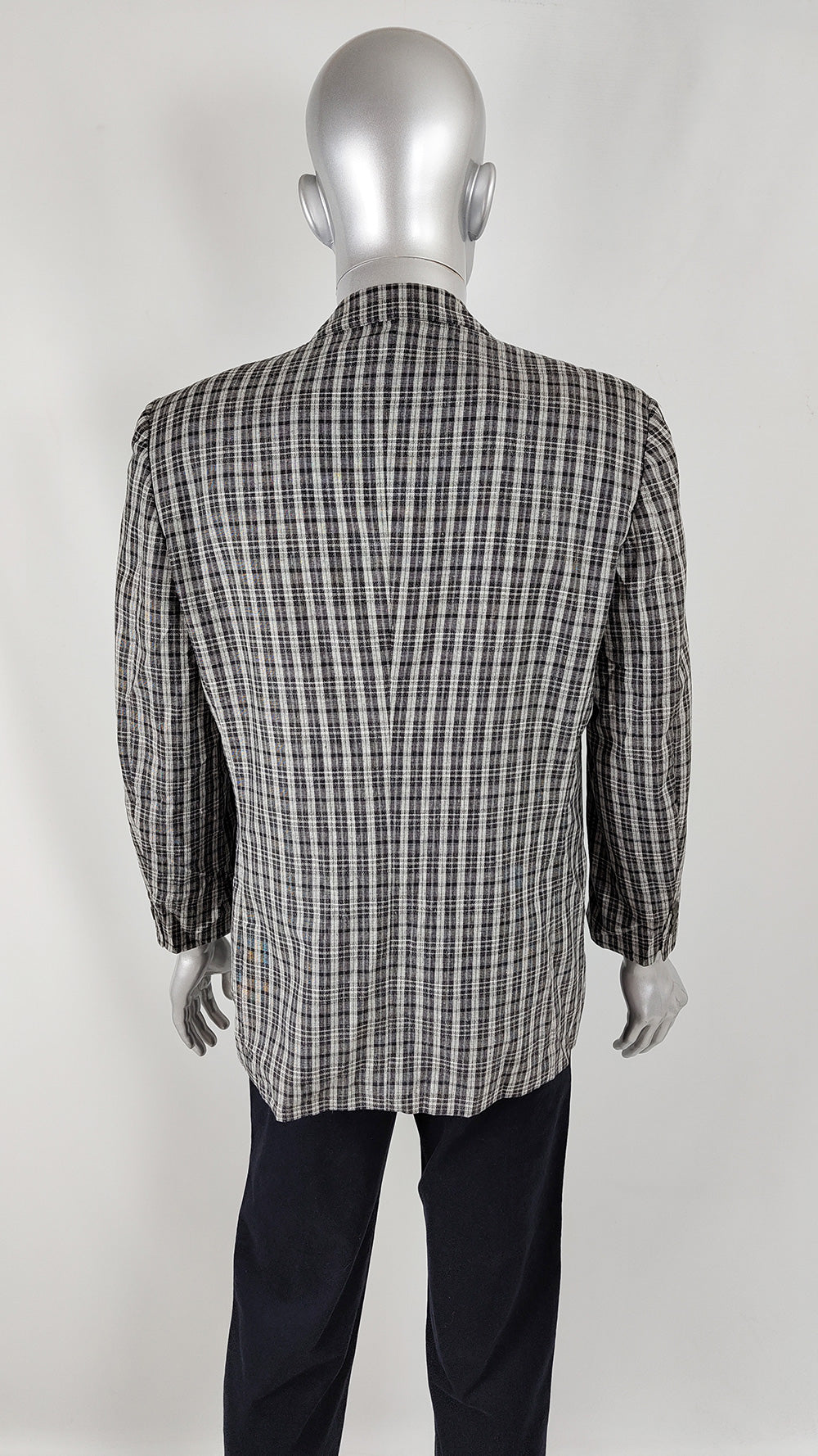 Texitaly Vintage Mens Italian Linen, Wool & Silk Check Blazer