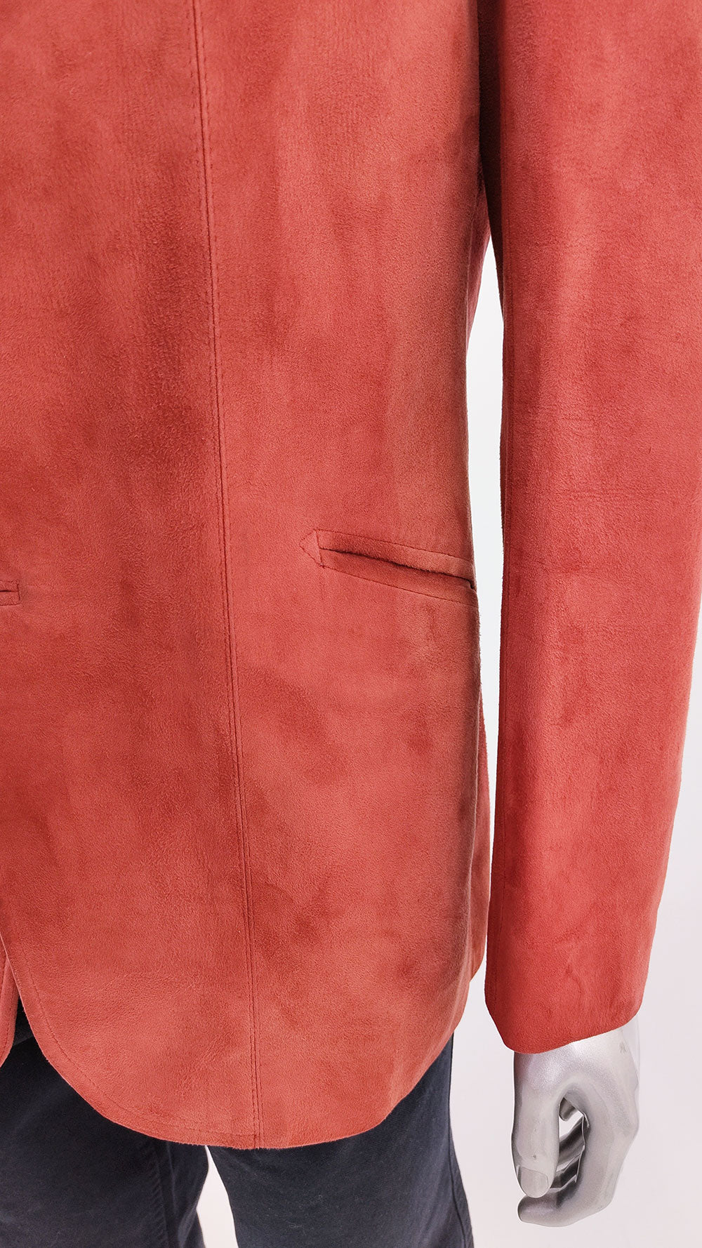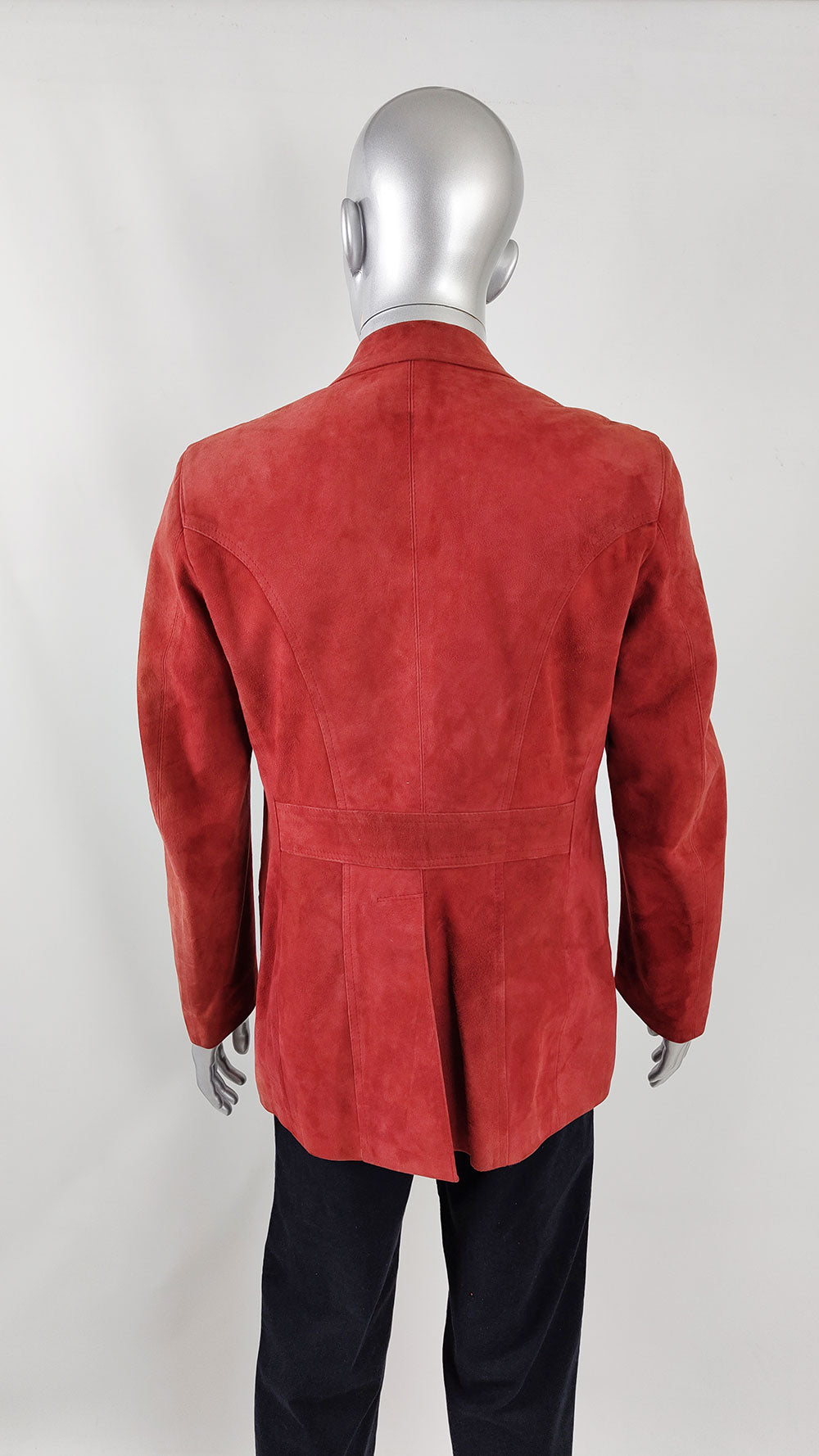 Vintage Mens Red Lambskin Suede Blazer Jacket, 1970s