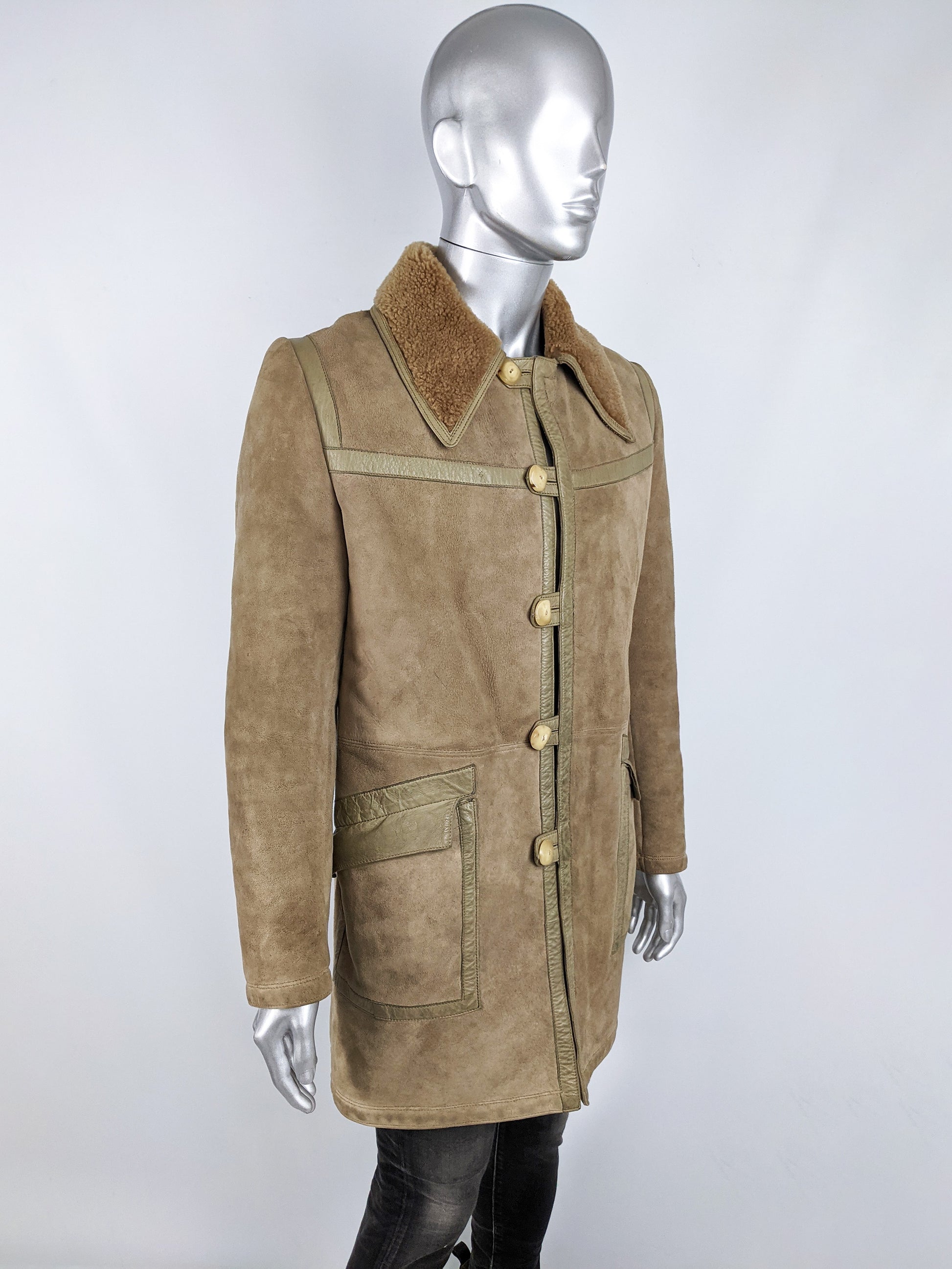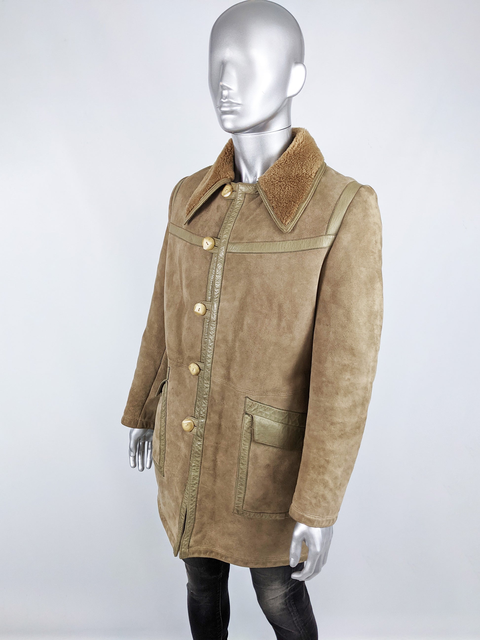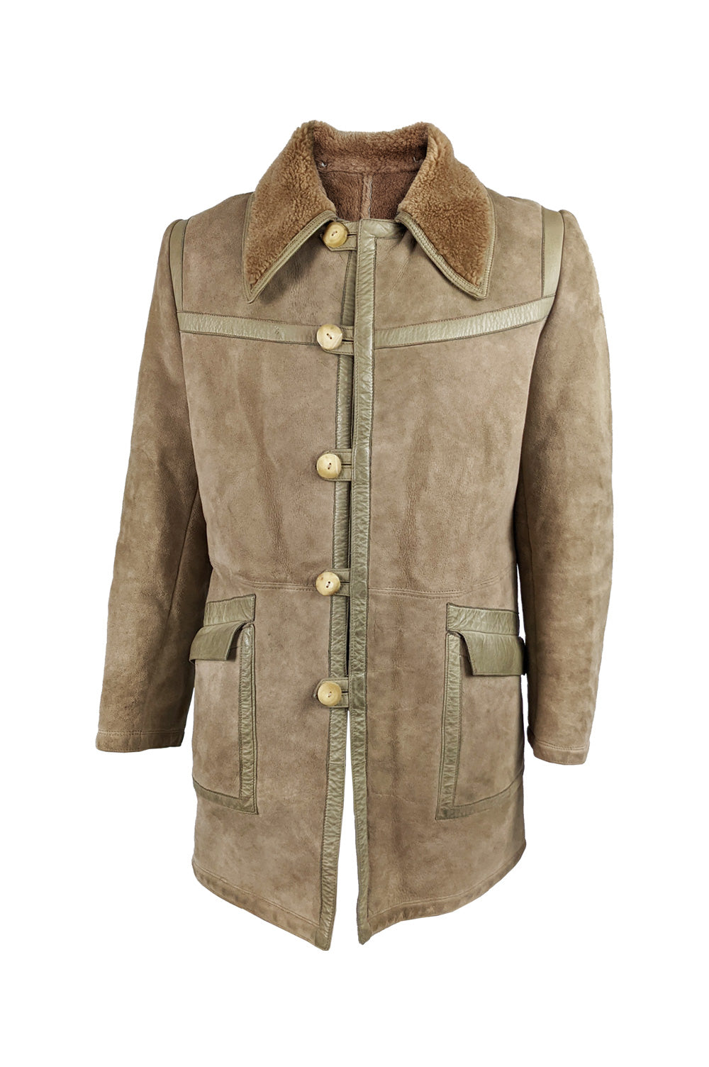 Mens Vintage Leather Trim Sheepskin & Shearling Coat, 1970s