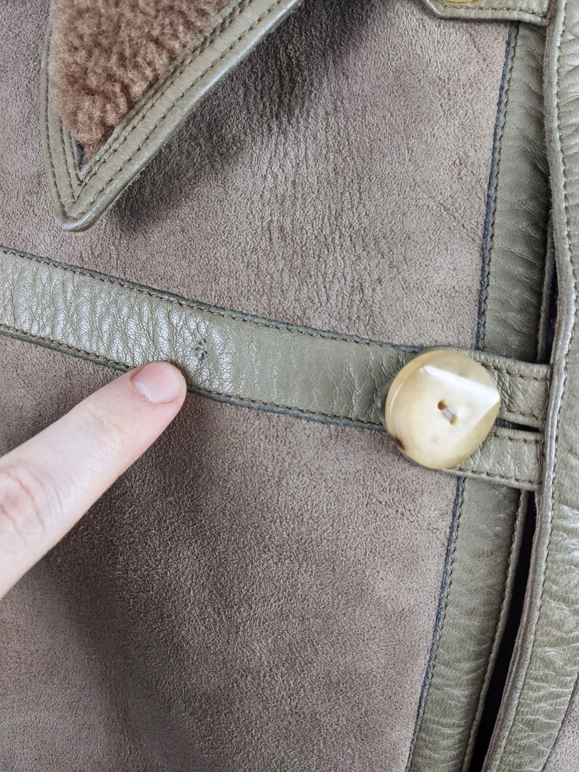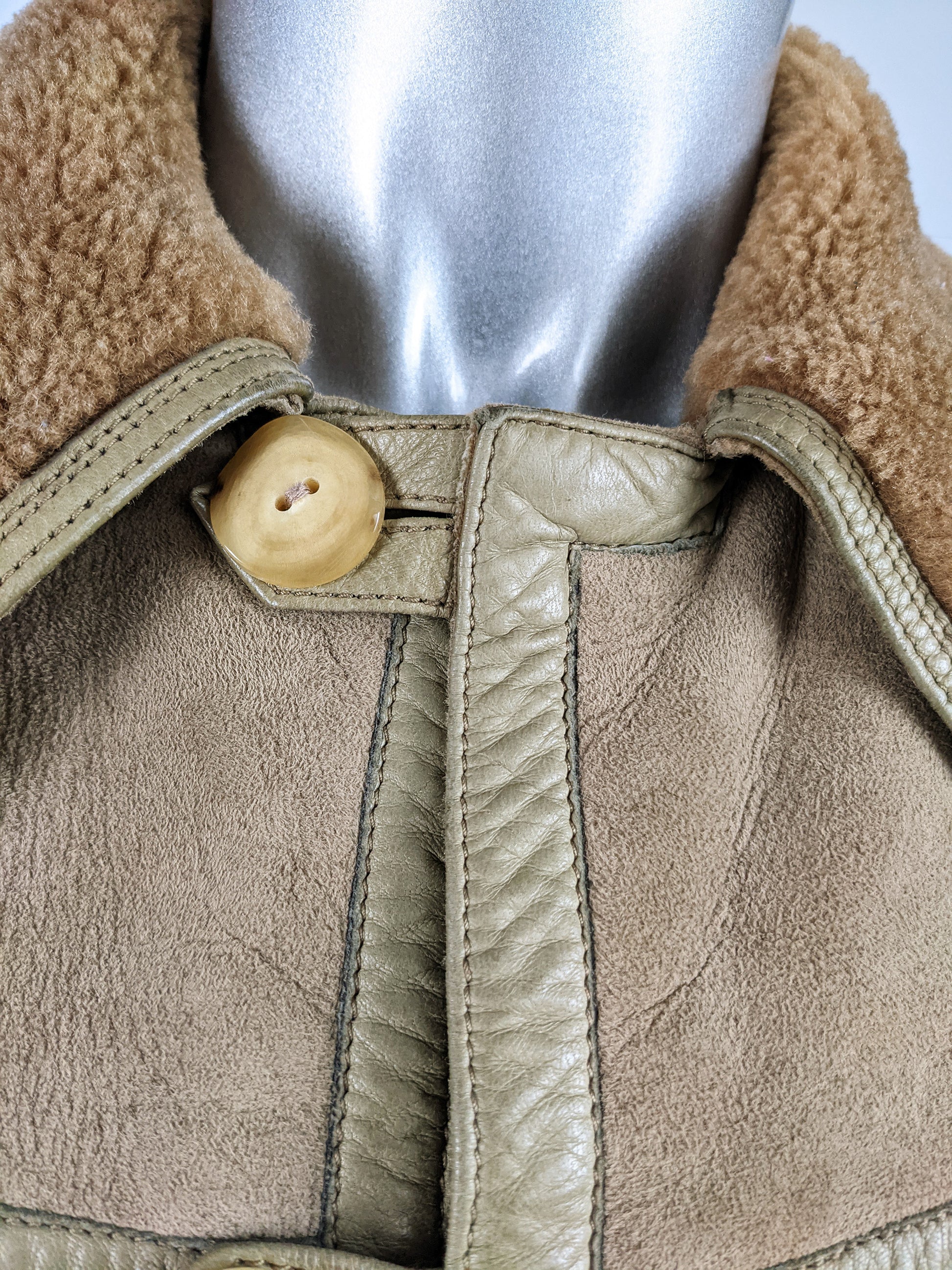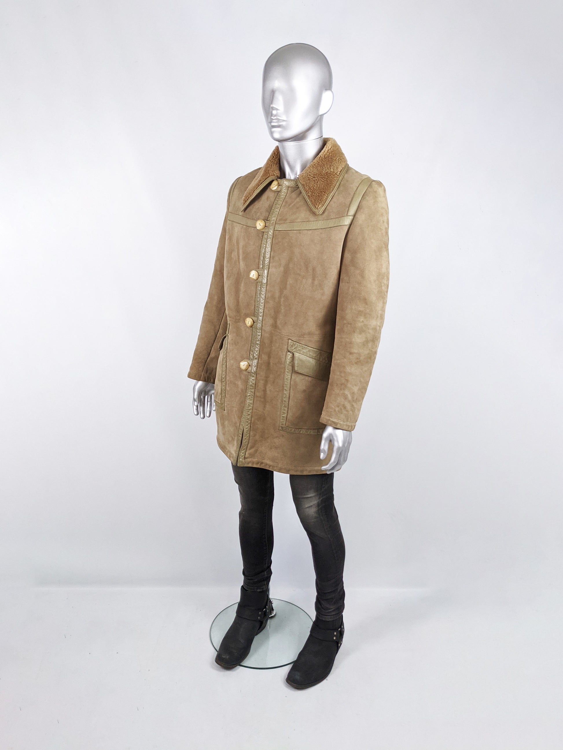 Mens Vintage Leather Trim Sheepskin & Shearling Coat, 1970s